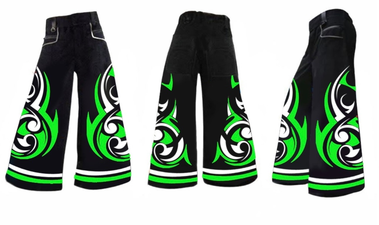 Green & White Fierro phat pants waist 44-45.5 inches (112-115.5cm) and length 39″ inches (99cm)